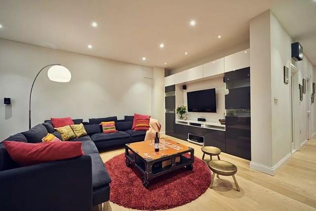 不要看着空间小,电视柜不够塞了,在沙发斜对面找个空地放,看电视就得歪脖子,这种就很不可取了。实在没地放,用壁挂式电视也成啊,办法总比困难多嘛。
