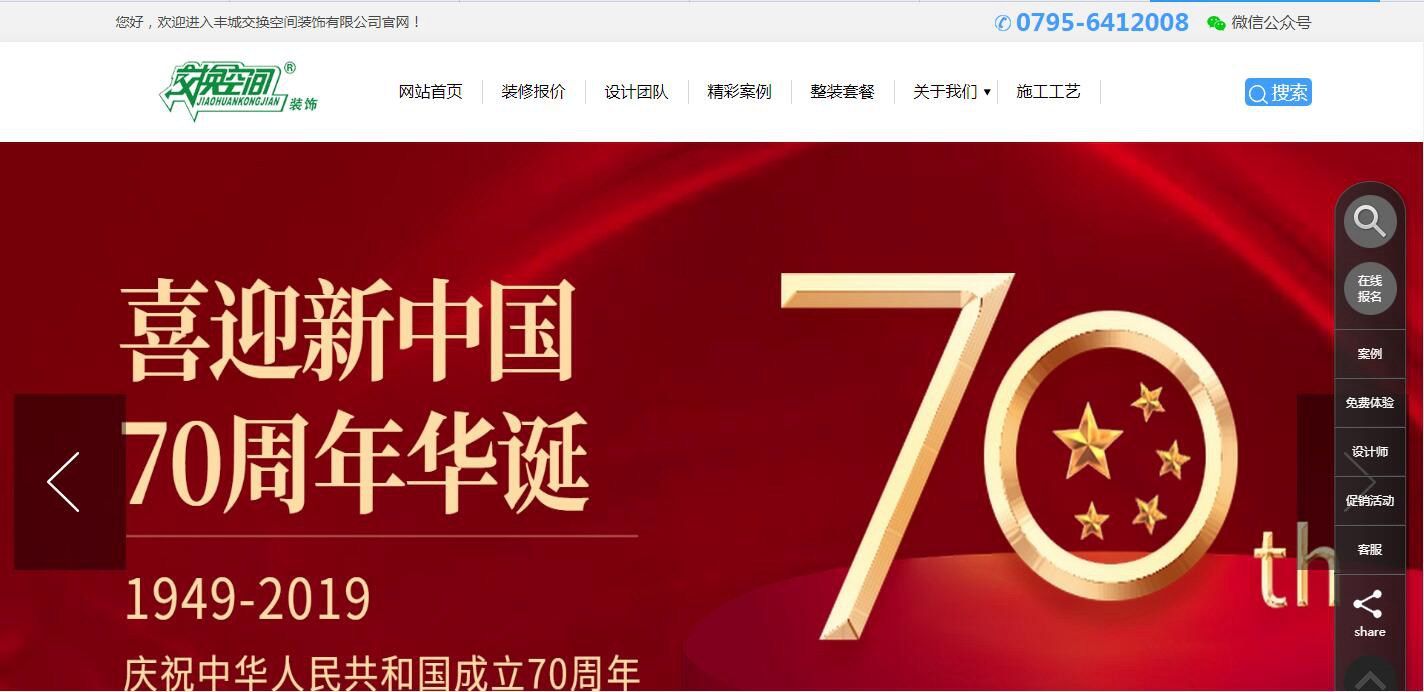 热烈祝贺丰城交换空间装饰2019新版官网上线!新官网内容丰富,栏目齐全,而且支持电脑,手机,微信公众号三网平台接入,更加适合业主的多方面浏览习惯。公司的新官网自上线以来,经过几日的调试,网站已经稳定完备,业主可以进入网站完成咨询服务、自助装修预约,比如装修报价、免费量房、预约设计师、预约查看工地施工工艺,参加公司的积分抽奖活动,有在线客服解决业主装修咨询。