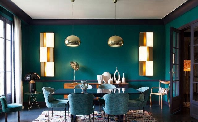 餐厅可以是一个表达颜色情绪的完美空间,试着尝试更大胆,更丰富的颜色,比你在家里的其他地方都更适合。单一的颜色,丰富的色调,使餐厅感觉豪华和温暖;较深的装饰部件,如海军蓝,深蓝或黑色,也增加了复杂程度。保持其他房间的颜色(如餐椅)在饱和度与墙壁色调相似,以融合空间。
