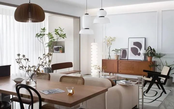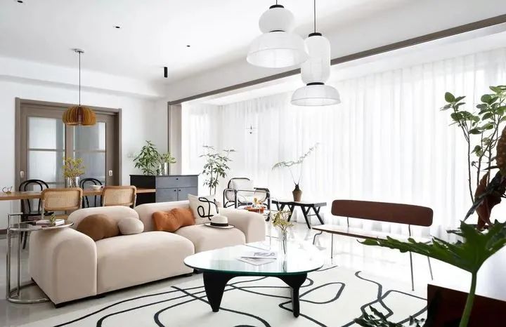客厅更多为文艺休闲的设计,多种沙发的组合提供了不同的舒适体验,绿植的加入营造了一种自然文艺的居家气息。