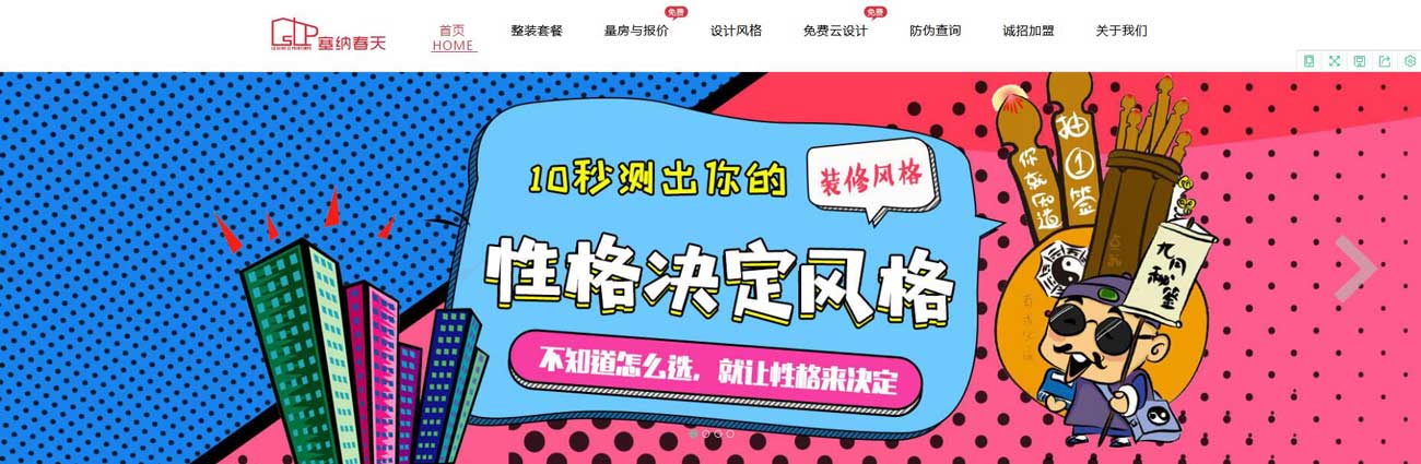 塞纳春天互联网装修网站模板下载,包含整装套餐、量房与报价、设计风格、免费云设计、诚招加盟、关于我们、精品案例、案例图库、服务流程、在线下单、装修预约、投诉建议、装修故事、楼盘案例、参观工地等栏目。