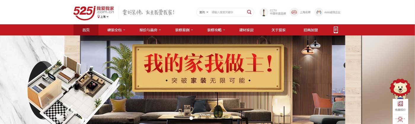 我爱我家互联网家装网站首页大图效果
